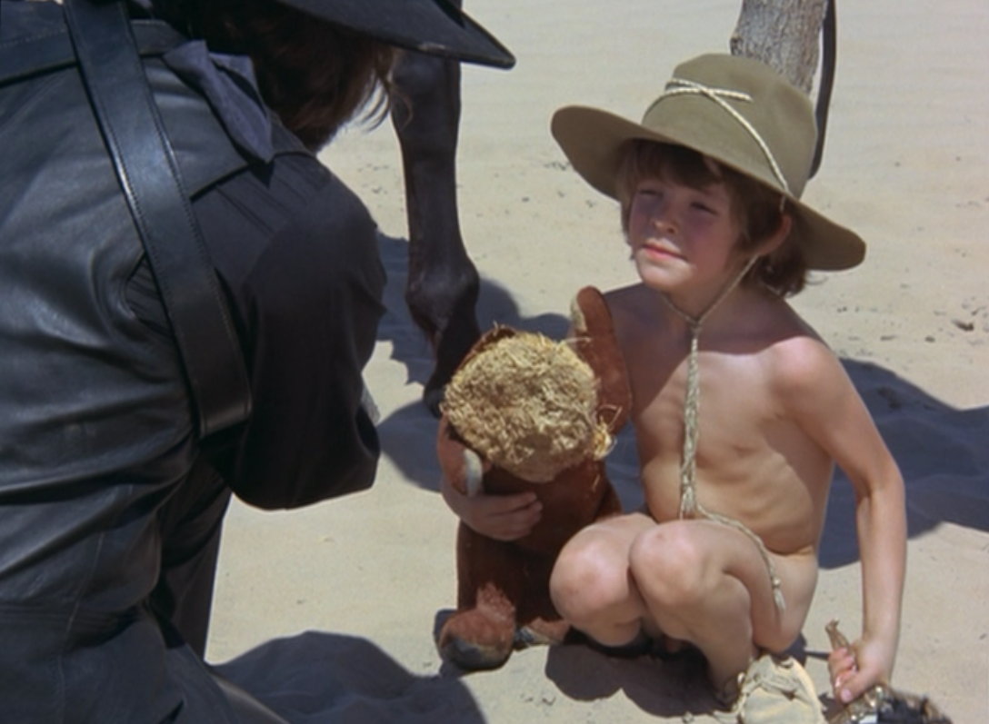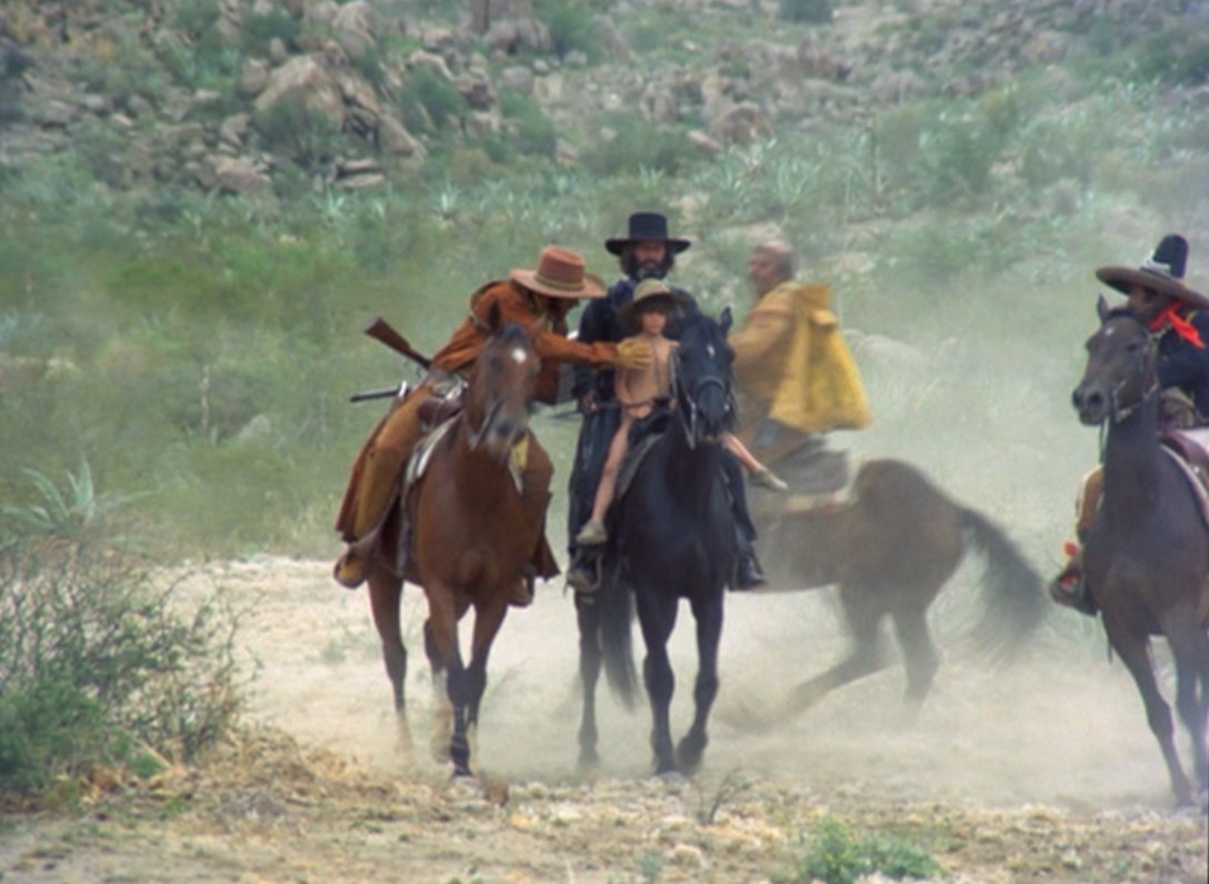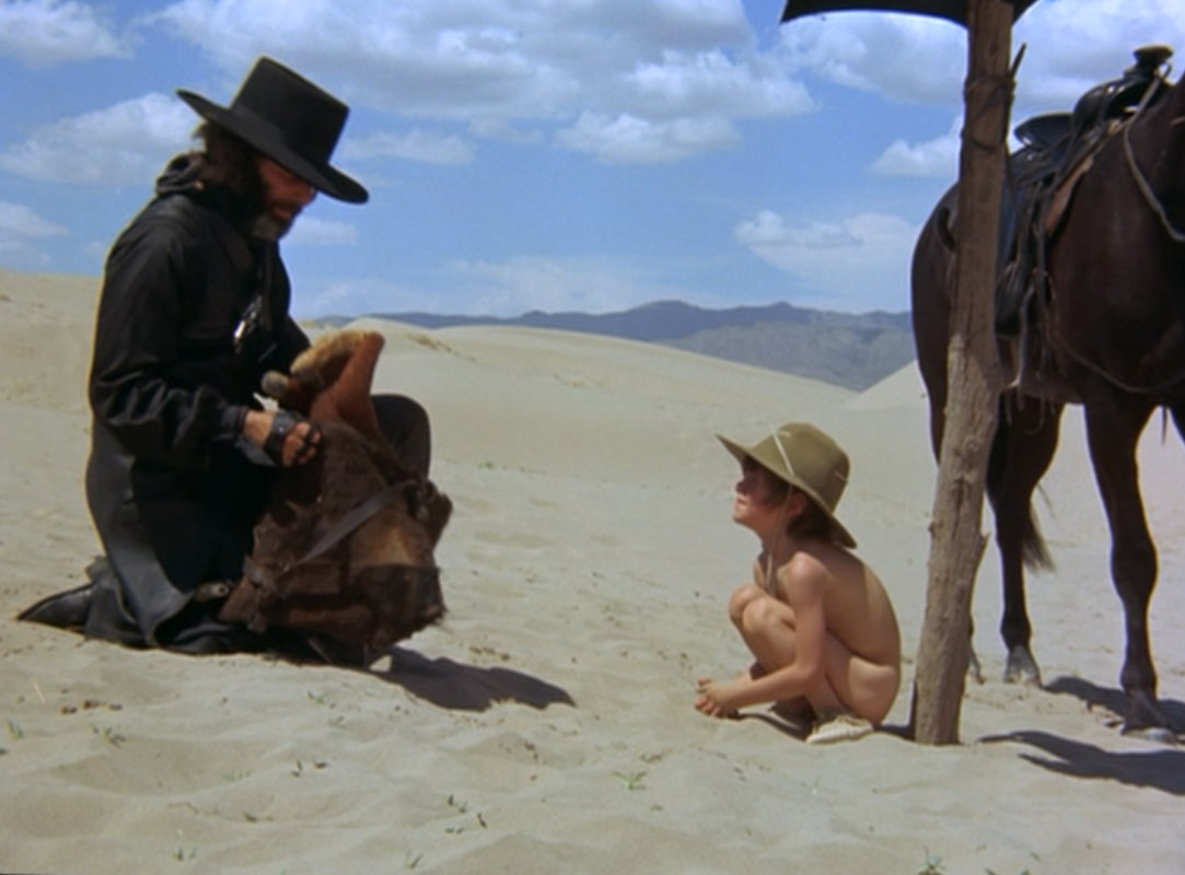 Ein in schwarz gekleideter Kopfgeldjäger und sein nackter Sohn reiten durch die Wüste. Irgendwo in diesem Niemandsland steigen sie ab und knien sich in den Sand. Der Kopfgeldjäger gibt seinem kleinen Jungen eine Puppe und ein gerahmtes Foto und sagt: „Du bist nun sieben Jahre alt, und ein Mann, vergrabe also dein erstes Spielzeug und das Foto deiner Mutter”.