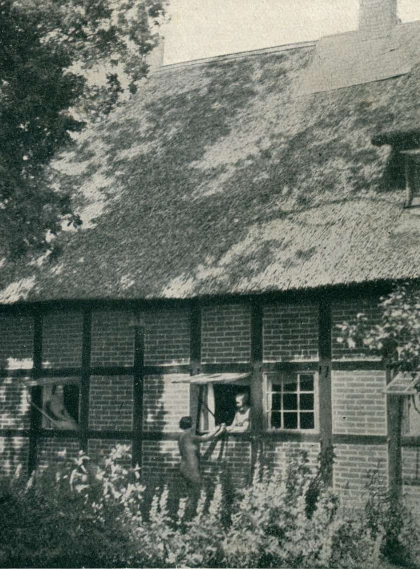... Die Schule bestand aus zwei alten, strohgedeckten Häusern, Nebengebäuden, einem großen Garten sowie einem sehr großen, angemieteten Gelände, auf dem eine Art Sportplatz und später sogar eine Badestelle war.