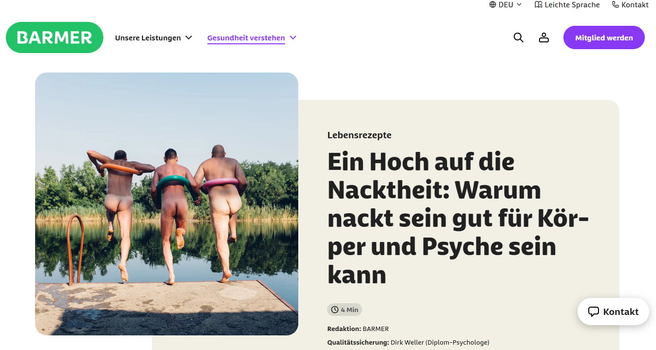 Wenn eine Krankenkasse für die Freikörperkultur wirbt, dann kann FKK doch nur gesund sein...
