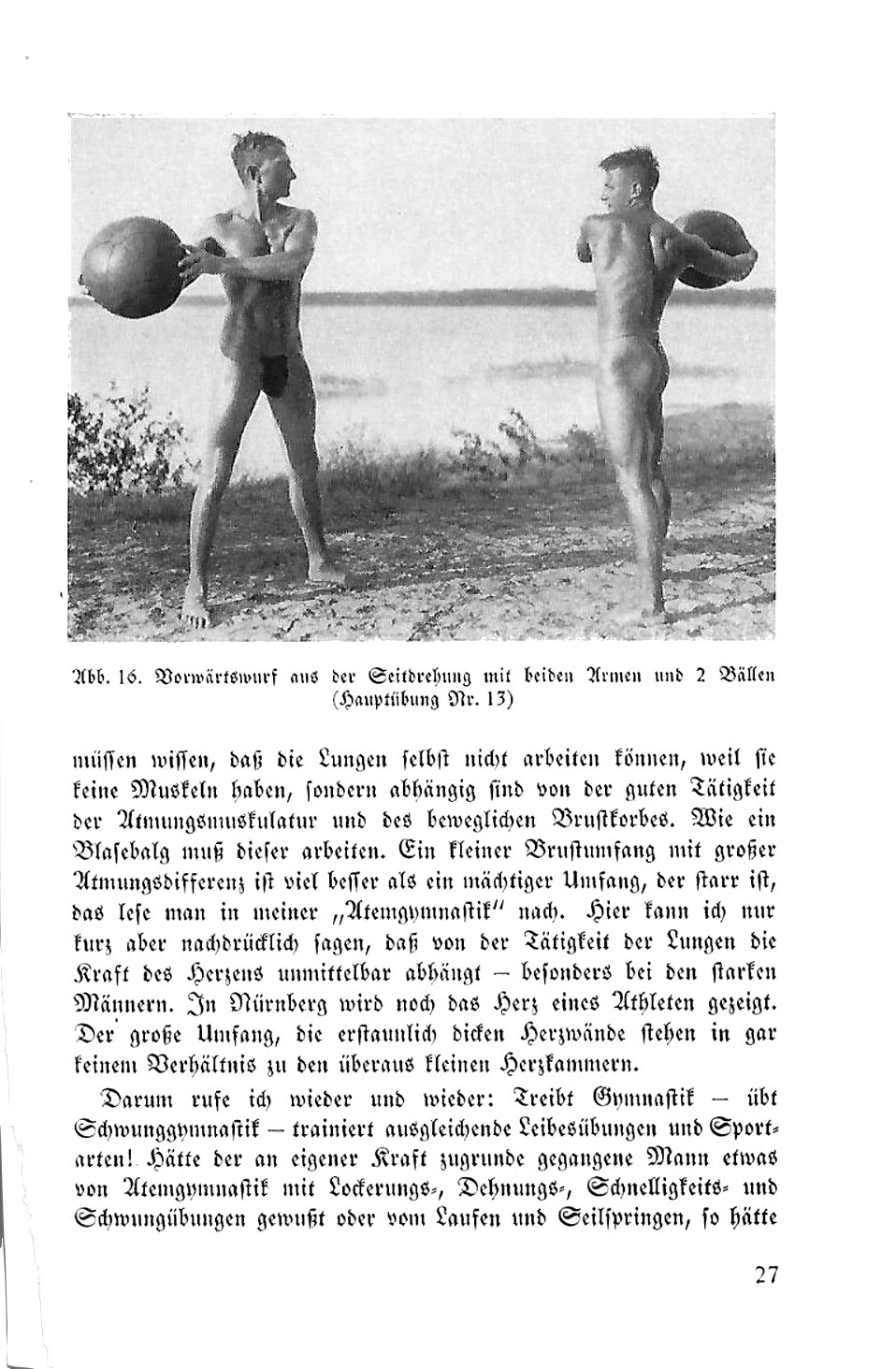 In diesem Buch beschreibt Hans Surén zunächst gymnastische Übungen, welche mit einfachen Sportgeräten wie dem Medizinball auskommen und den Beginn der eigentlichen Kraftübungen bilden.