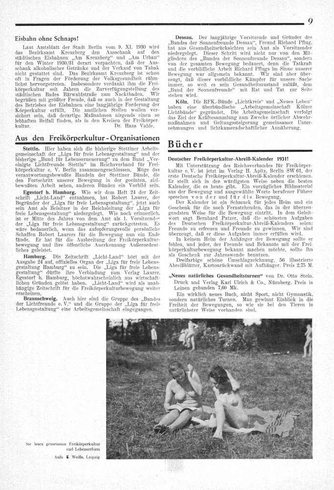 Freikörperkultur und LebensreformReichsverband für Freikörperkultur e.V. (RFK)III. Jahrgang • Januar 1931 |