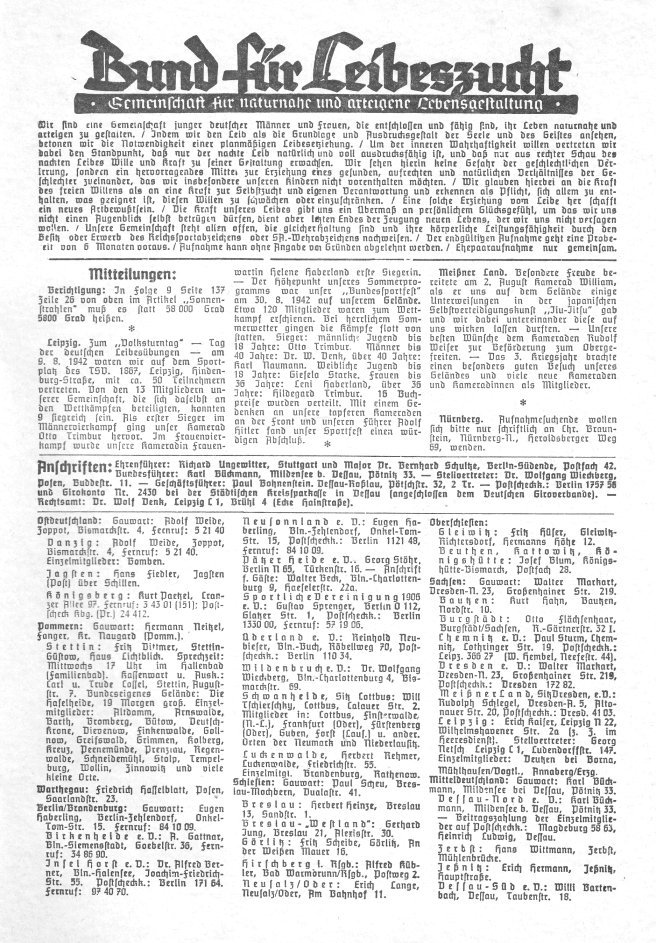 Deutsche LeibeszuchtBlätter für naturnahe und arteigene LebensgestaltungHeft 10 • X. Jahrgang Oktober 1942 |