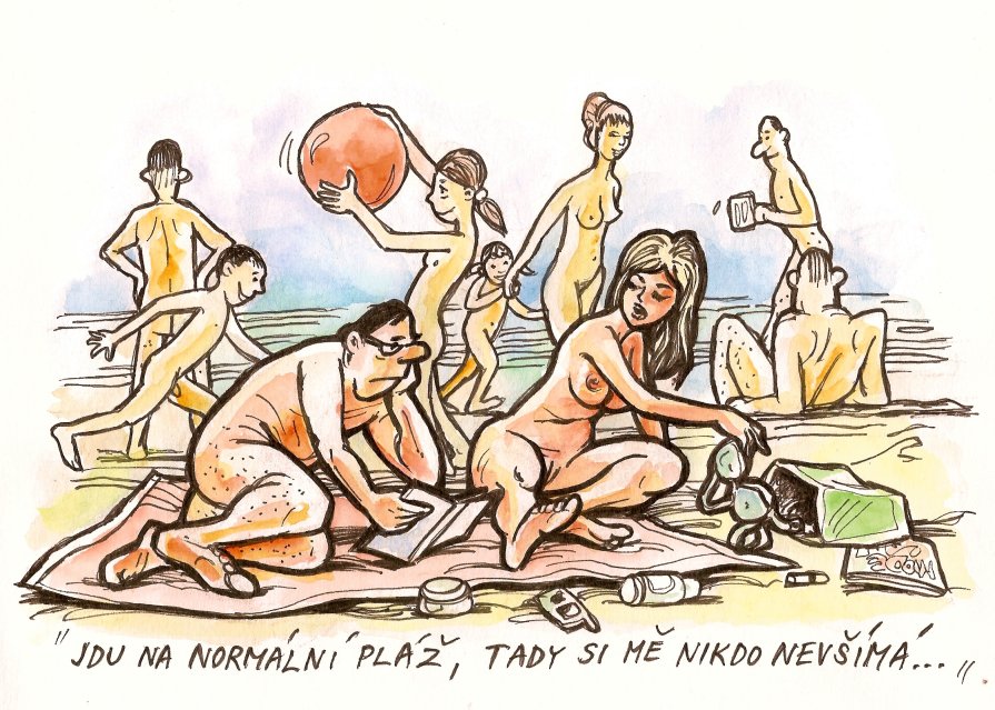 Schon seit Jahren sorgen seine humorvollen Illustrationen für eine gelungene Abwechslung auf der Webseite der tschechischen Naturisten → www.naturista.cz.