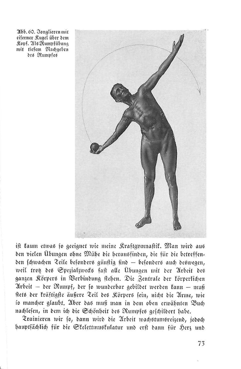 In diesem Buch beschreibt Hans Surén zunächst gymnastische Übungen, welche mit einfachen Sportgeräten wie dem Medizinball auskommen und den Beginn der eigentlichen Kraftübungen bilden.