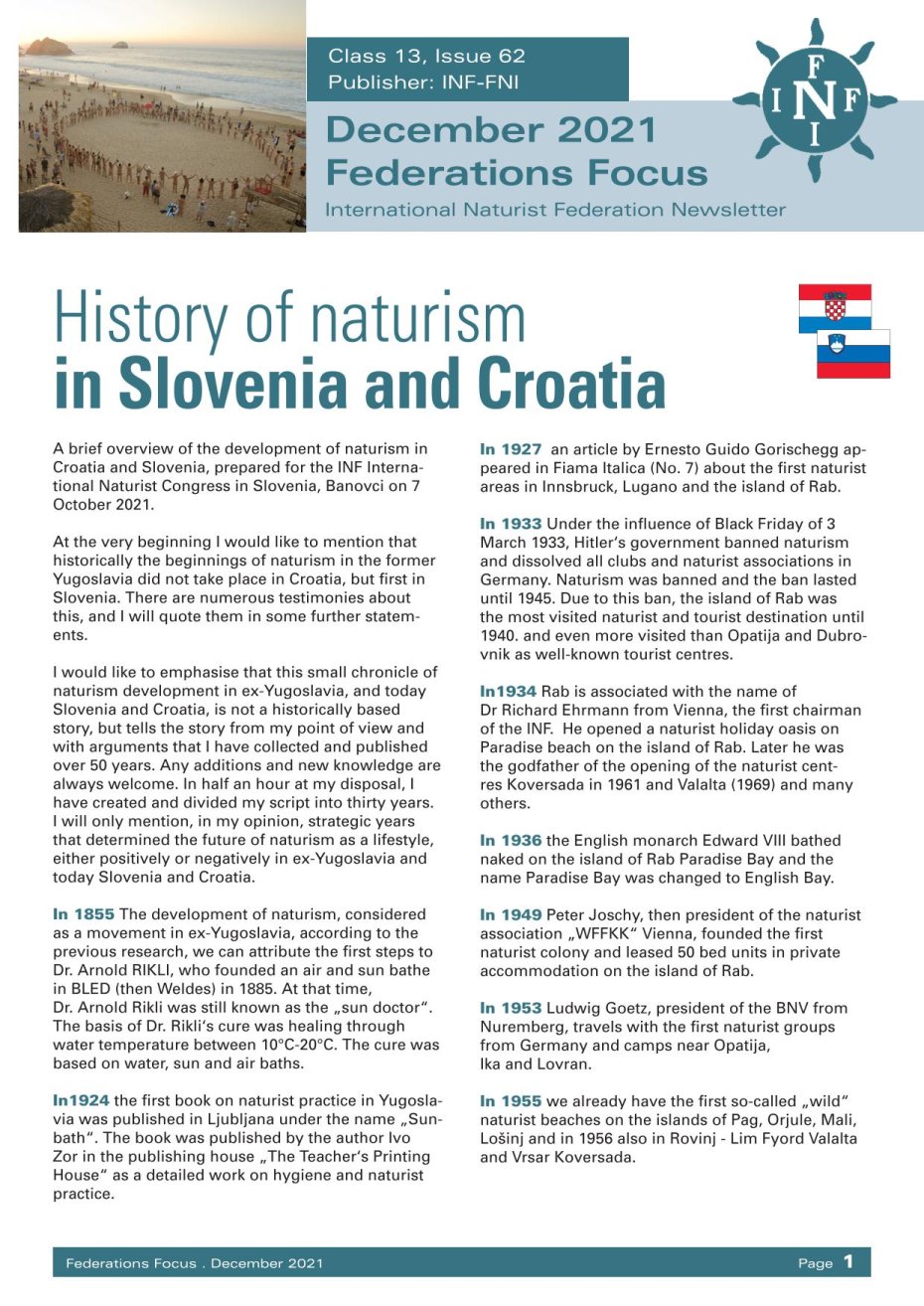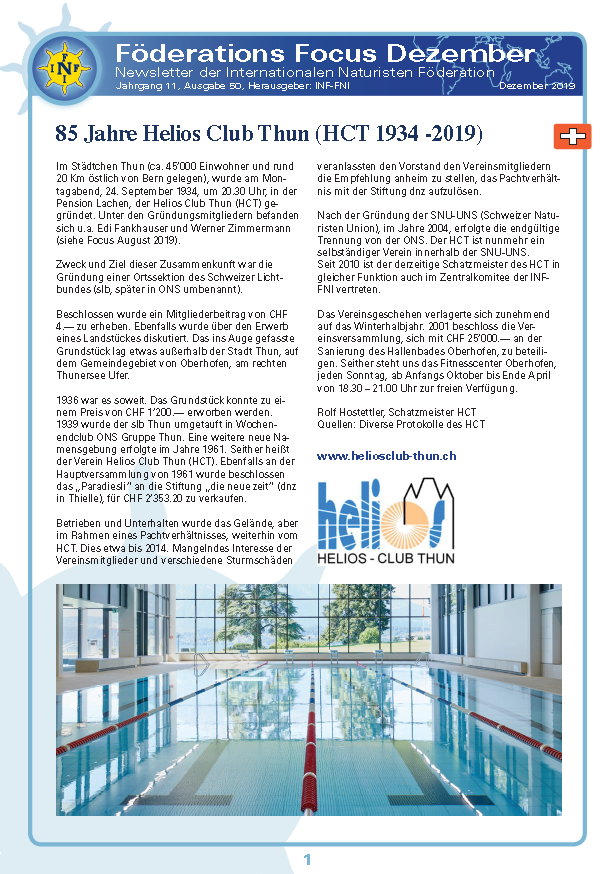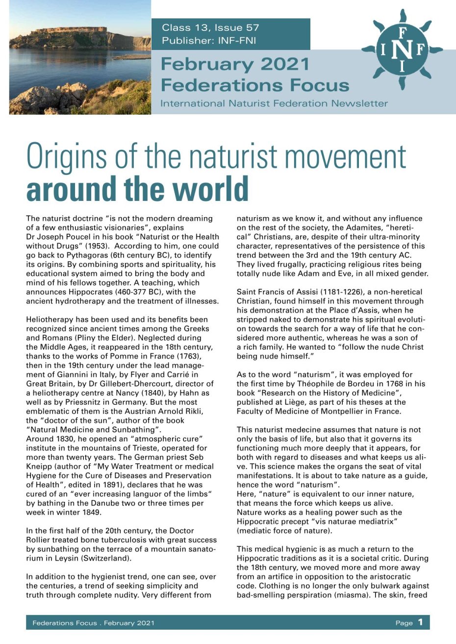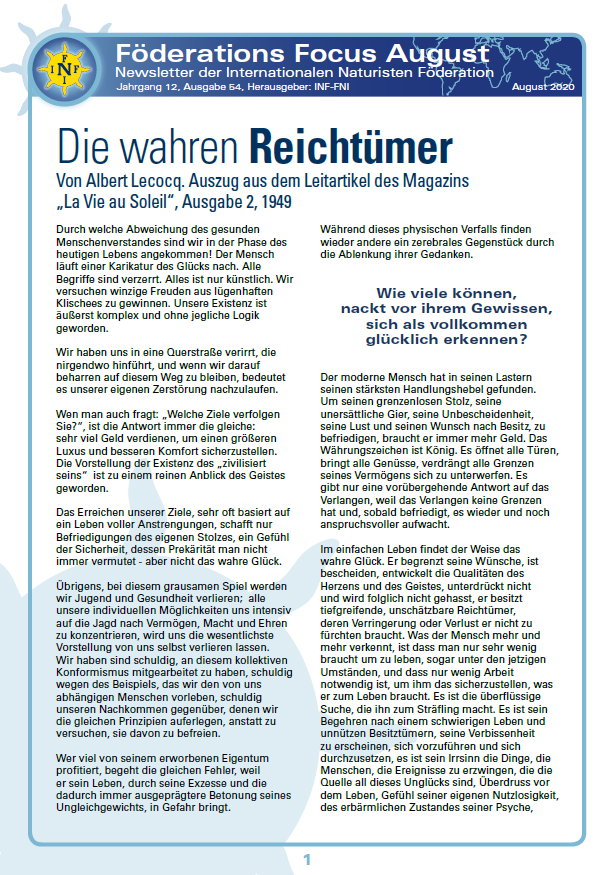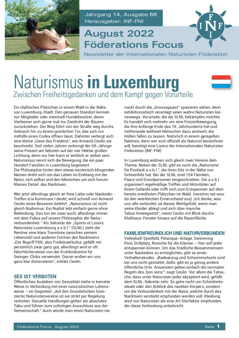 Nach dem „INF-Bulletin” und dem Magazin „naturist international” stellt die INF/FNI nun einen kostenlosen Newsletter zur Verfügung, den Ihr im Download-Bereich der INF/FNI-Webseite findet. Auch ältere Ausgaben sind dort vorhanden. Der Newsletter beinhaltet wichtige Informationen, Nachrichten und Termine. INF/FNI ➤ Downloadbereich |
