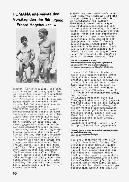 Fragezeichen Fragezeichen ist eine Zeitschrift der fkk-jugend Ausgabe 3-4 - 1971 Redaktion:Ort:Verantwortung:Herausgeber:Erscheinungsweise:Format:Seiten:Auflage:Titelbild: fkk-jugendBielefeldSigrid BanzhafHorst Palmer~14,7 x 20,7 cm56- keine Angabe -Rolf Tilmani-Vincent Seitenbeispiele: Inhalt: an unsere leser / an das publikum Inhalt / Impressum an uns über uns der nach-ruf es stellt sich vor: bundesvorsitzender Erhard Hagebeuker Oskar Hörrle verschenkt 16000 Mark Kriegsdienstverweigerung Heliozoen am Sonnensee: beispiel vorbildlicher jugendarbeit jugendcamp '70 Teen Treff 71 • corona, dänemark - Résumé eines Jugendlagers (Selbst)Kritik als Schwarzmacher oder als Anregung zum Verbessern? Spiel ohne Grenzen ZON-(lager) Zeitung Ohne Namen Westdeutsche Jungnackte verunsichern Dänemark oder die Bunte Zelle des DFK Kommentar zu teen-treff 71 Lagerkonzeption „Teen-Treff 71” Diskussionsgrundlage der pädagogischen konzeption der fkk-jugend aufgrund der erfahrungen von teen-treff '71 was ein kind gesagt bekommt Ehrenratsverfahren LV NRW gegen Lagerleitung Tee-Treff '71 ist der cvjm-hamburg des teufels, oder ist er ganz einfach vernünftig bisher unveröffentlichte schätze aus dem »ruf«-nachlaß Bindestrich / Briefe, die man oft verschickt §218 oder die unmündigkeit der frau BffL Hannover - pro + contra News