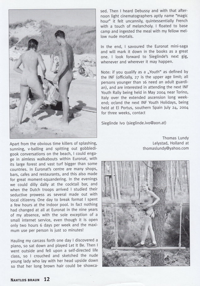 NAHTLOS BRAUNInformationen für FKK-FreundeOffizielles Organ des Österreichischen Naturistenverbandes (ÖNV) Ausgabe 193 Nr. 1 • Frühjahr 2004 |