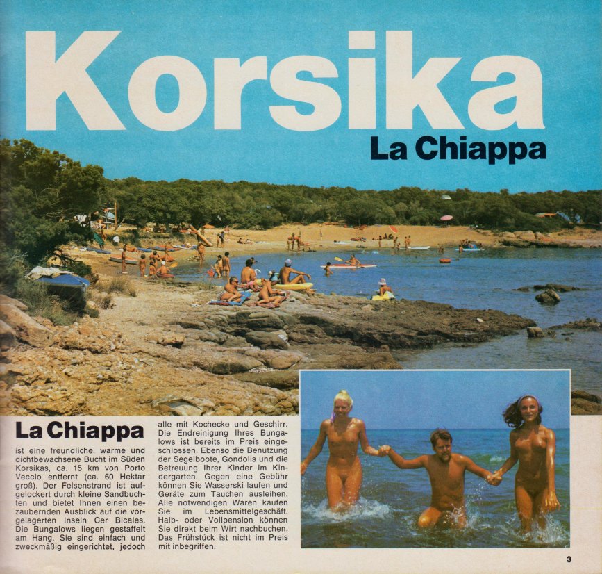 Sommerbroschüre mit 24 Sewiten in Format 21,2 x 20,2 cm. Reiseiele waren La Chiappa und Tropica auf Korsika - Istrien / Valalta, Insel Rab, Rovinj, Umag-Katoro und Malera in Jugoslawien, sowie Reiseziele an Nord- und Ostsee.