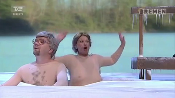Vinterbadme - „Winterbaden” ... in diesem Sketch ging es um die Tatsache, dass das Baden im eiskalten Wasser für die Gesundheit durchaus förderlich ist, gewisse männliche Teile allerdings die Kälte nicht so mögen und sich daher „etwas zurückziehen” - sehr zum Leidwesen der weiblichen Badegäste.
