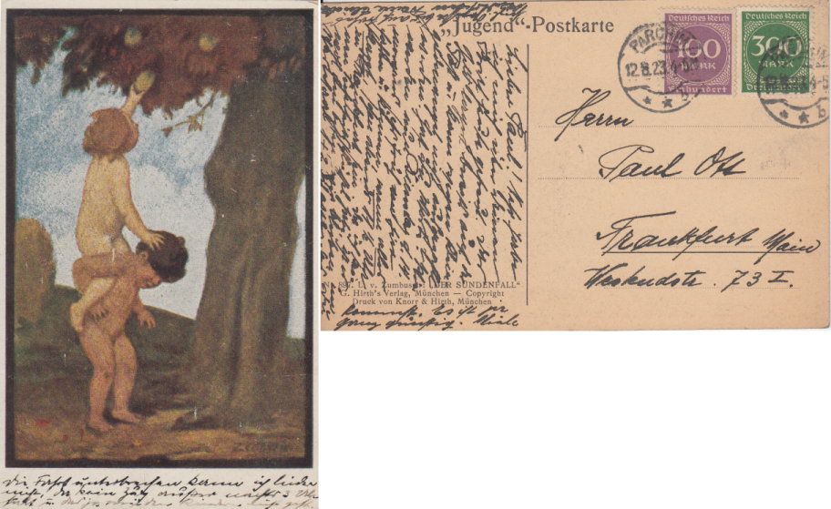 ![]() In den 50er und 60er Jahren unterlagen die Postkarten mit Motiven aus der Freikörperkultur, ebenso wie die FKK-Hefte, der Zensur. Die Postkarten durften nur in verschlossenen Briefumschlägen versandt werden ... und der Verkauf dieser Karten an Jugendliche war verboten. |