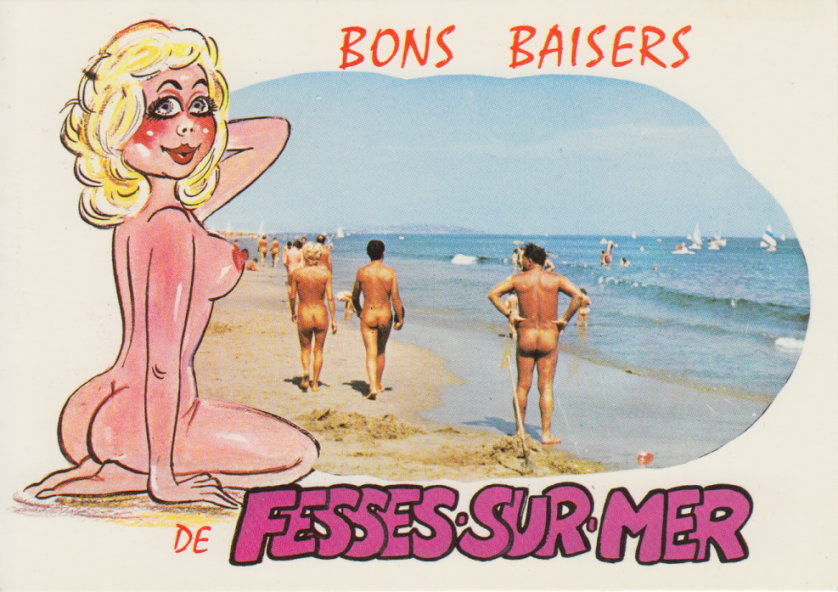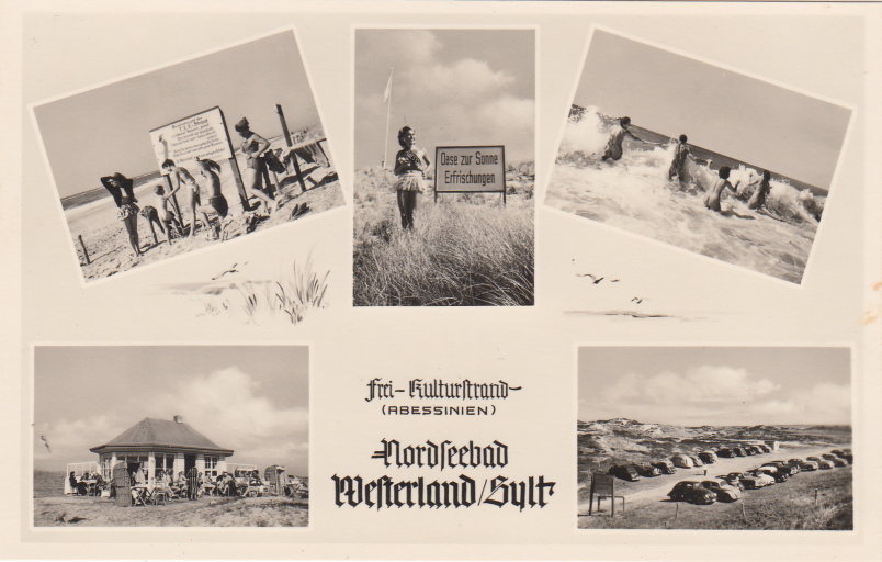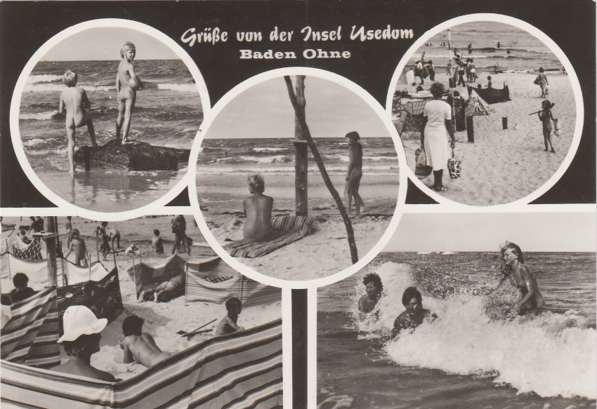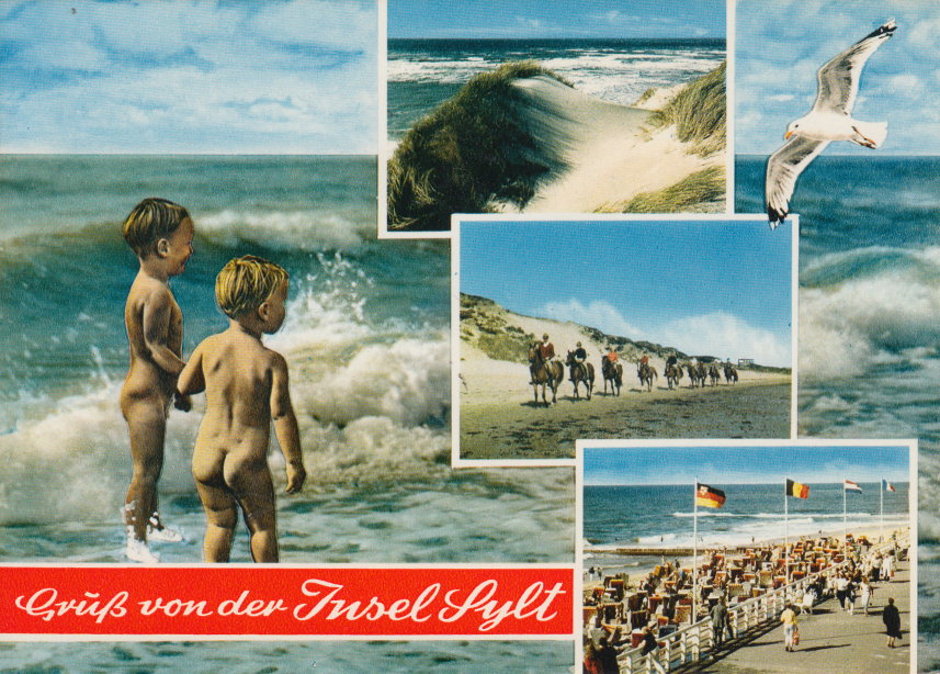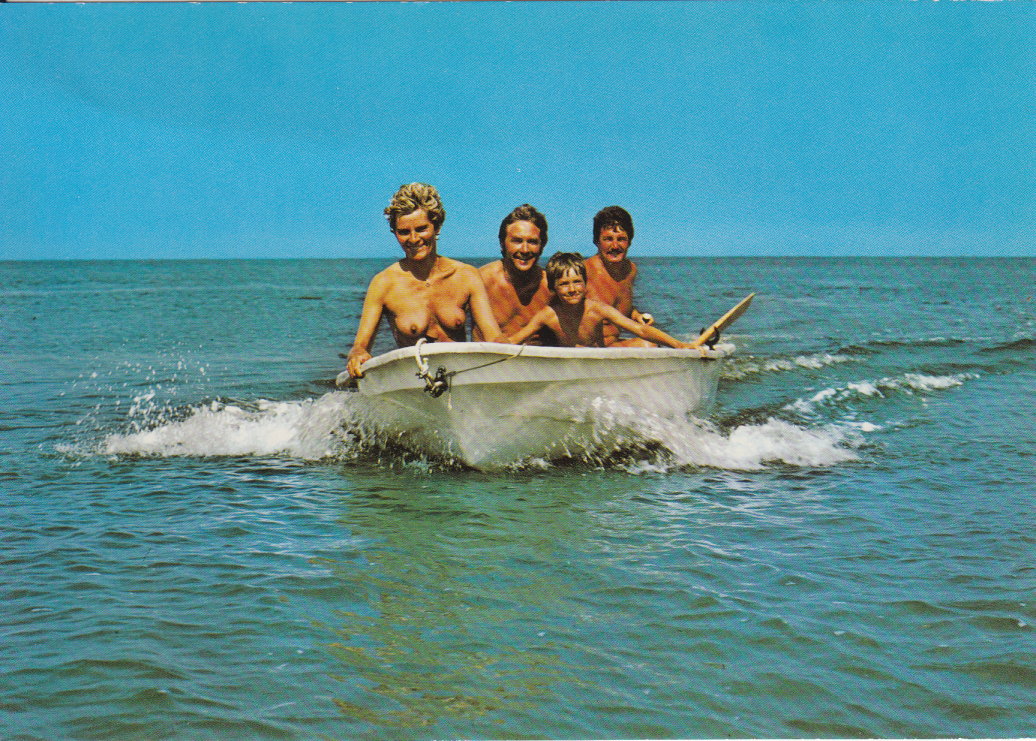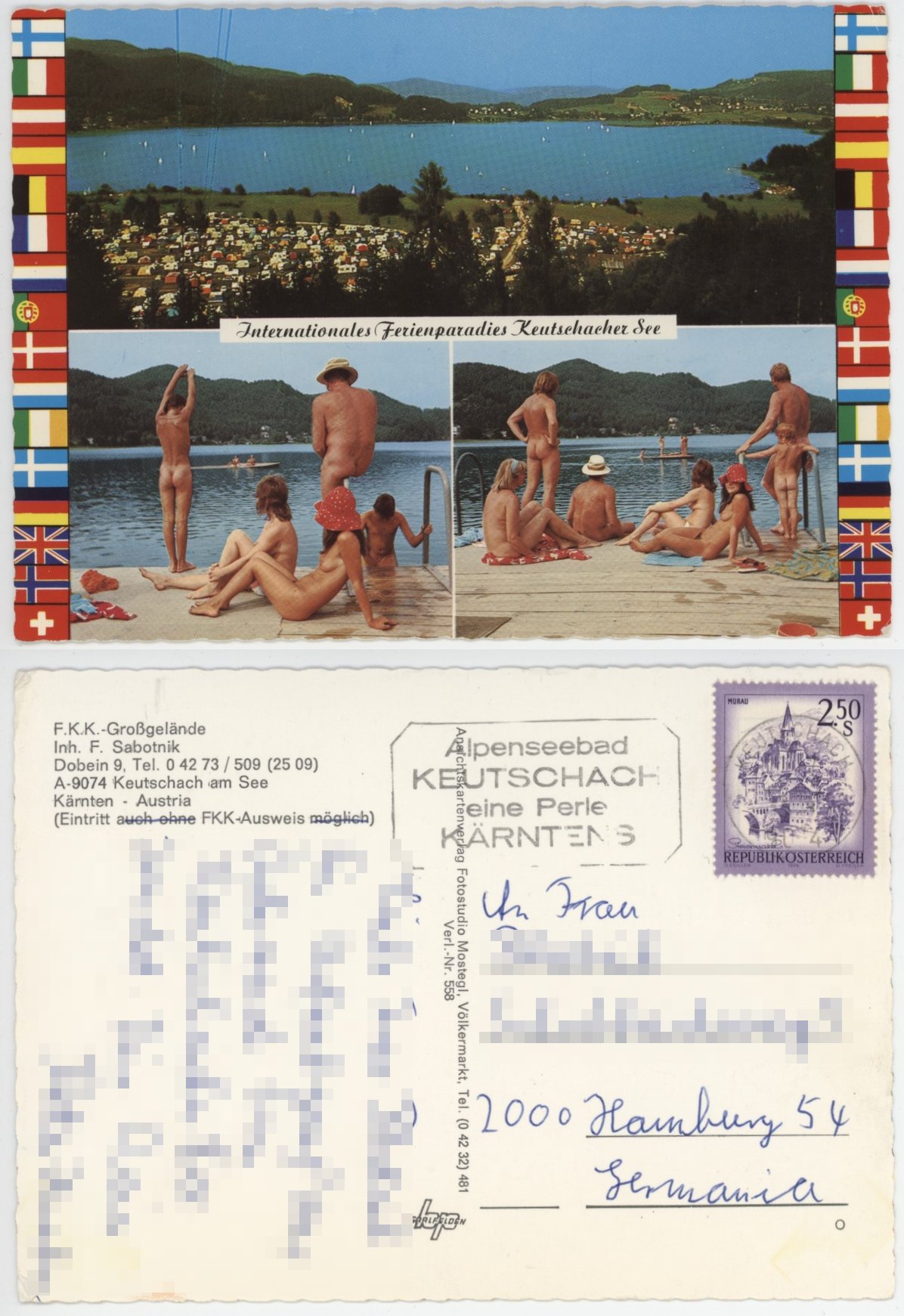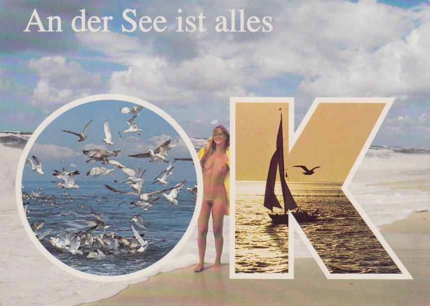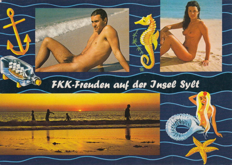 Postkarten, oder aber auch Ansichtskarten genannt, zeigen der Familie und den Freunden zu Hause, wie schön es doch im Urlaub ist. „Unterwegs” macht die Karte auch gleichzeitig noch ein wenig Werbung für das Reiseziel - in unserem Fall sogar auch noch für die Freikörperkultur.