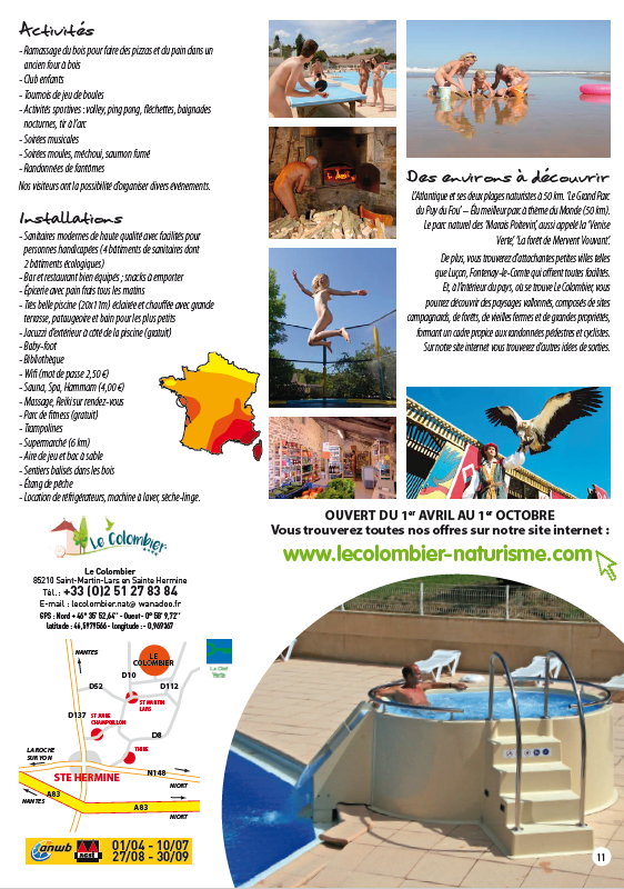 Herausgegeben von Natustar, in welchem diese 6 Naturisten-Zentren zusammengeschlossen sind. Mit Kurzbeschreibungen in französischer Sprache