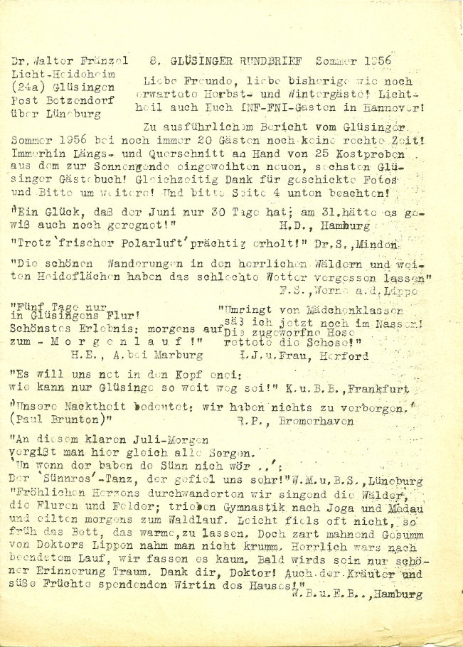 Viele Jahrzehnte später eschien auch in der Zeitschrift „Sonnenfans” ein dreiseitiger Bericht von Dr. Schultze-Naumburg.